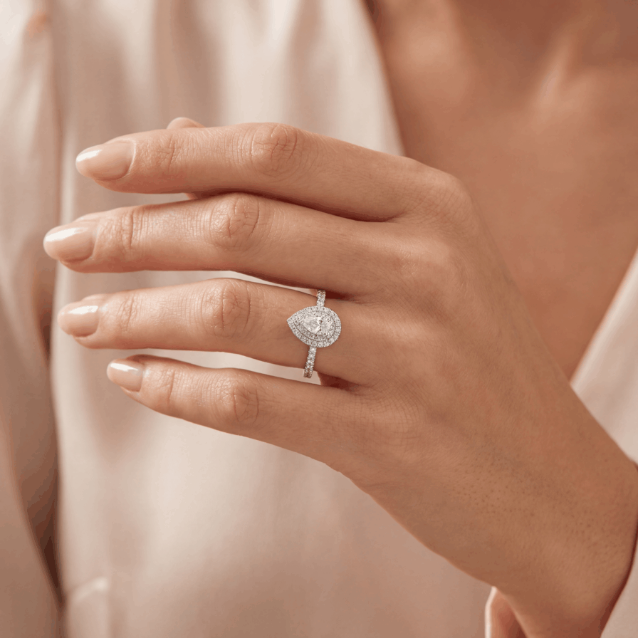 Nhẫn Pear Halo được lấy cảm hứng từ những khoảnh khắc trưởng thành, rõ ràng và chuyển mình trong cuộc sống.