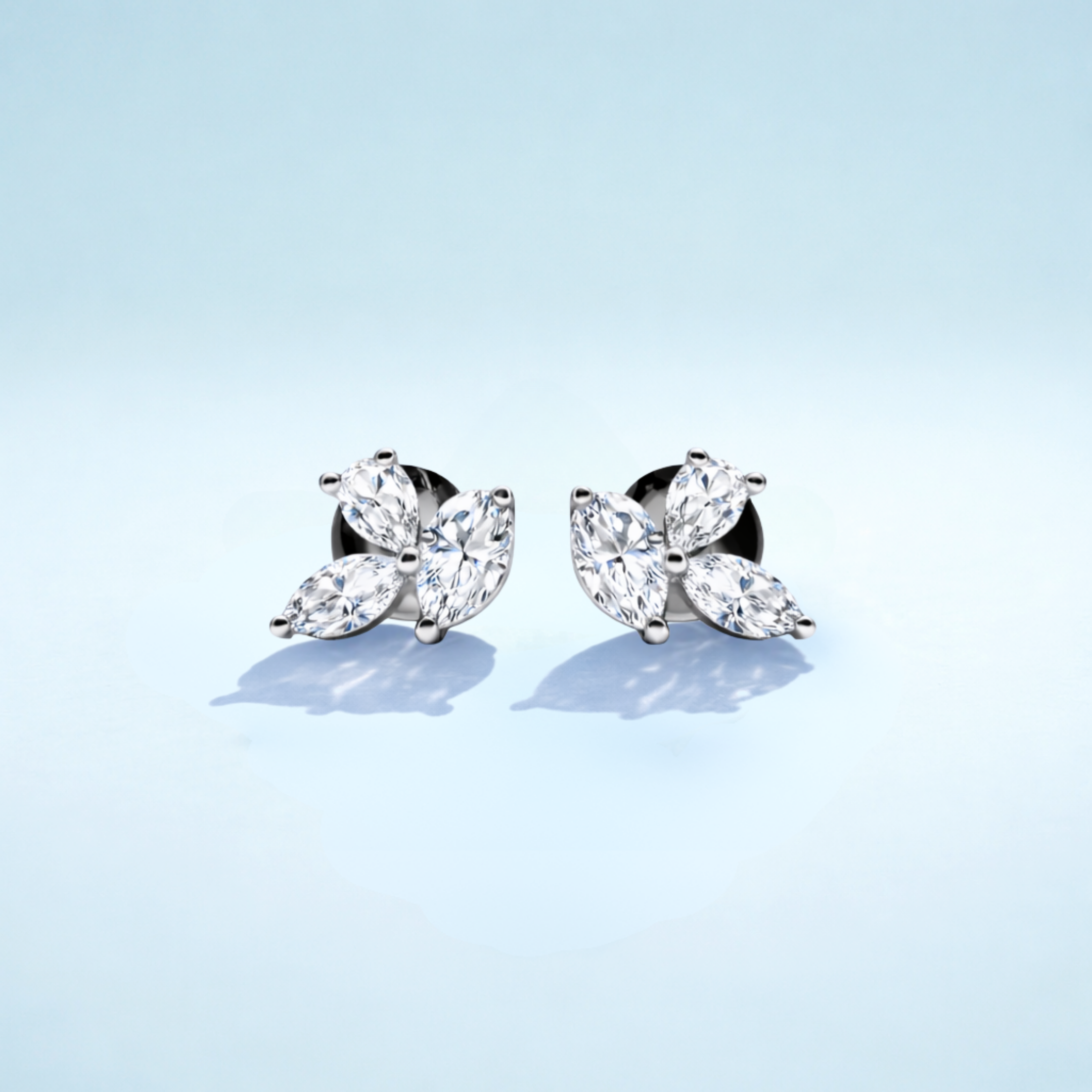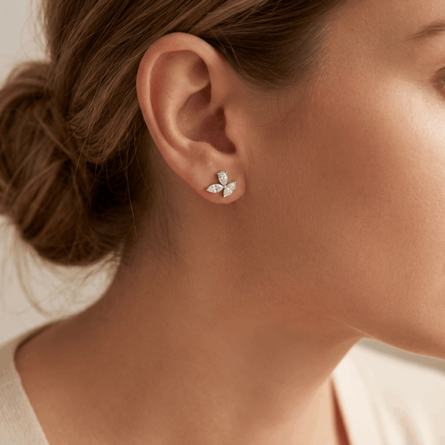 Bông tai stud với thiết kế phối hợp nhiều giác cắt kim cương lab-grown, tạo hình như cánh hoa mềm mại, tinh tế và nổi bật.